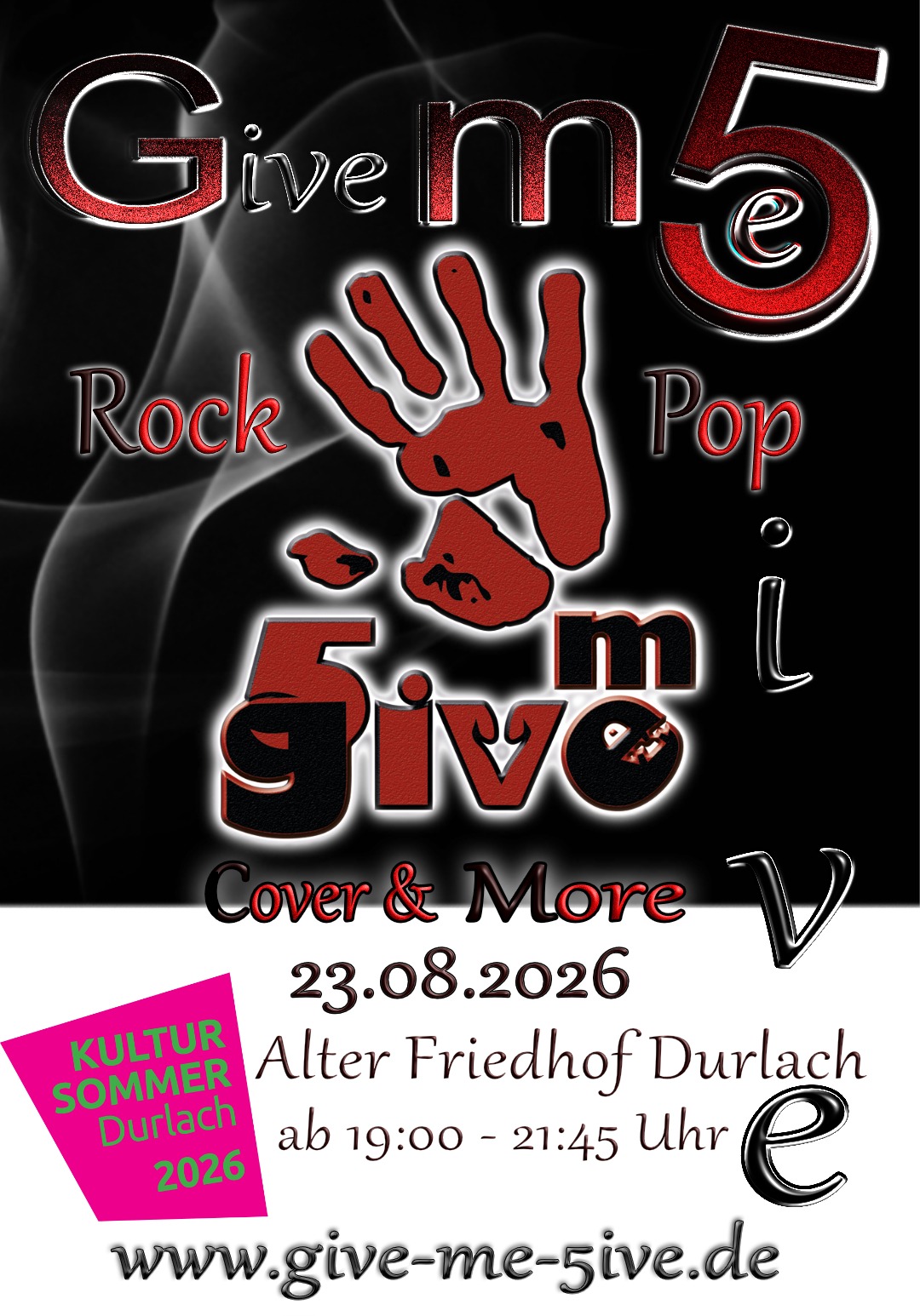 Bereit für einen Abend voller Energie, Emotionen und echter Livemusik? Dann darfst du Give me 5ive nicht verpassen! Die Rock/Popband bringt den Alten Friedhof zum Beben – mit einem Mix aus mitreißenden Covers, die direkt ins Herz und in die Beine gehen.